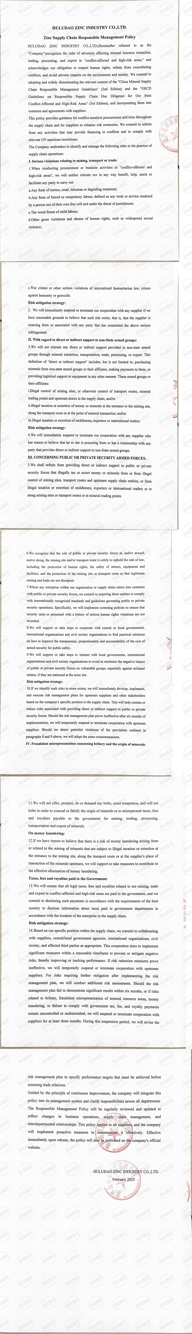 葫蘆島鋅業(yè)股份有限公司鋅供應(yīng)鏈盡責(zé)管理政策(中英文)